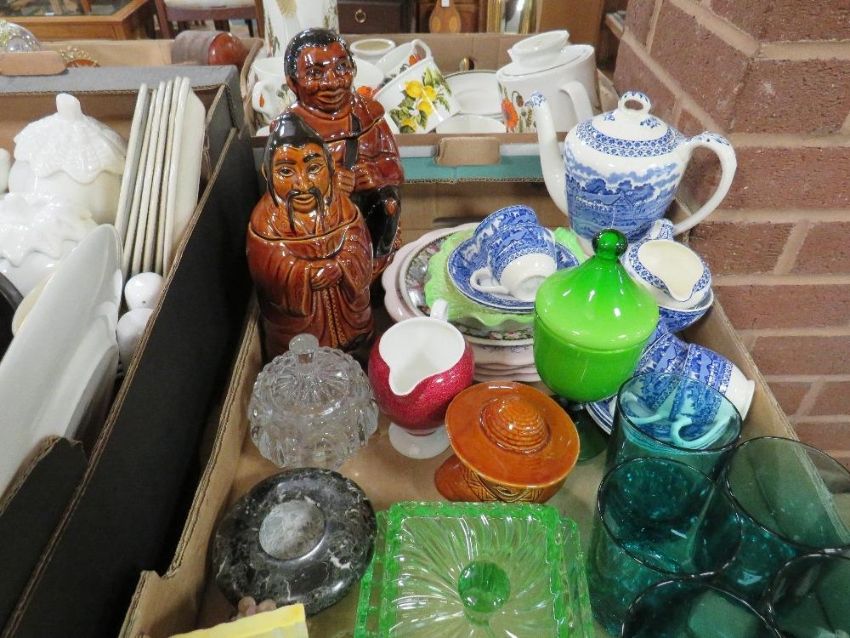 Five trays of assorted ceramics and glass to include Coalport, Midwinter