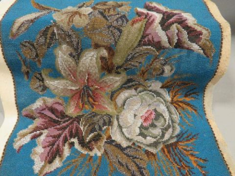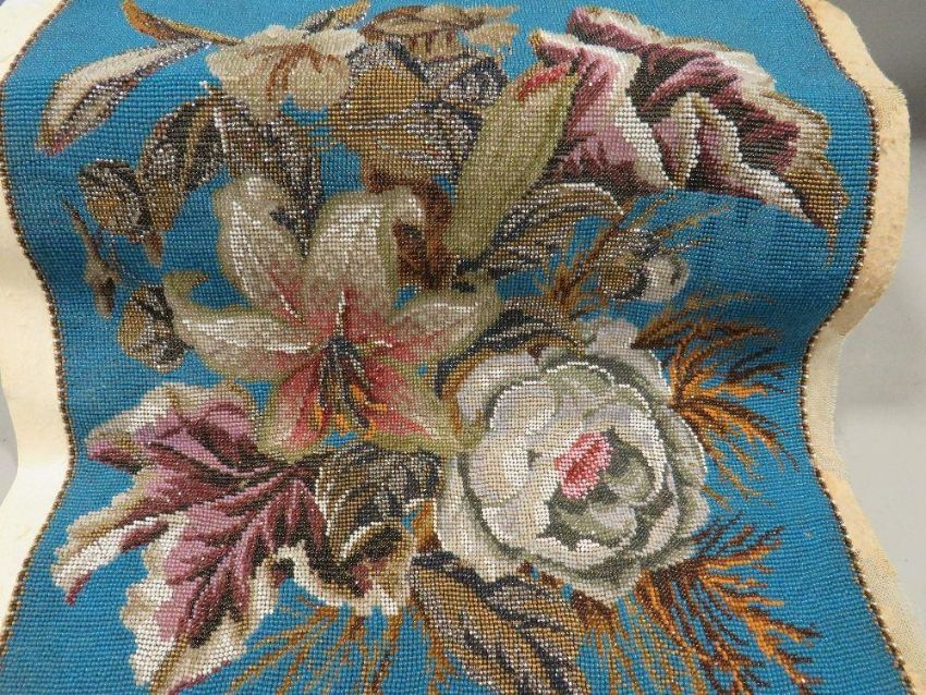A vintage beadwork flower panel together with two American themed embroidered panels (3)