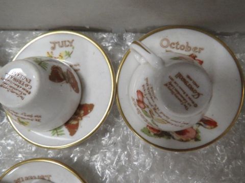 Set of twelve Months of the Year Caverswall miniature cups and saucers