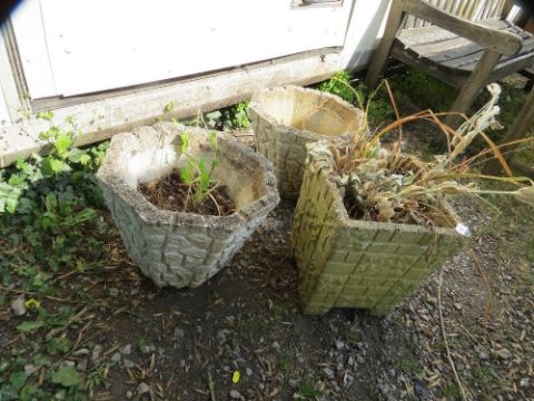 Three concrete garden planters