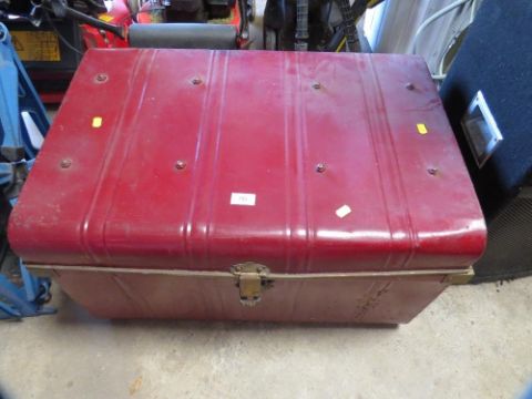 A steel vintage travel trunk