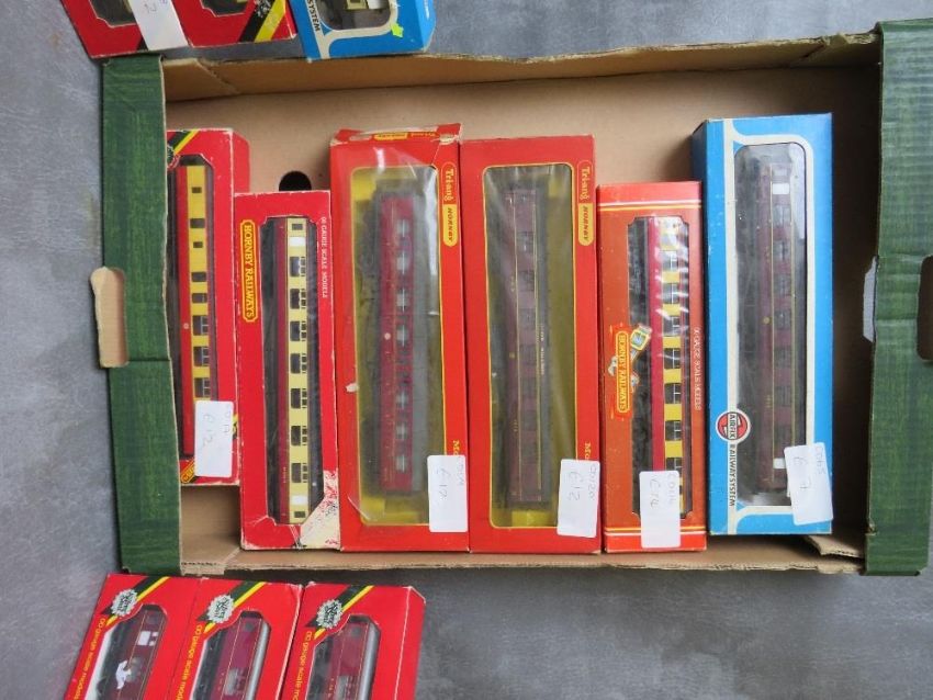 TWELVE BOXED AIRFIX AND HORNBY 00 GAUGE TRAIN CARRAIGES