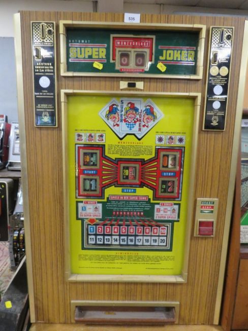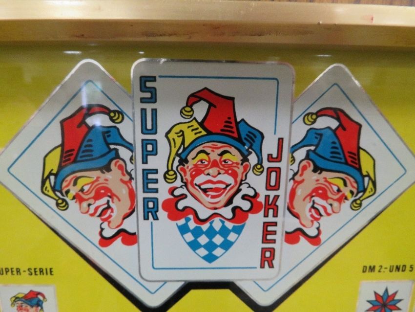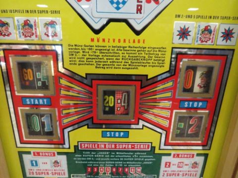 A VINTAGE ROTOMAT SUPER JOKER WALL MOUNTED FRUIT MACHINE, set up for the German market, H 88 cm