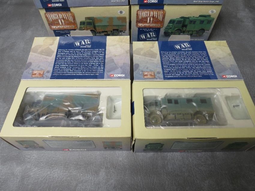 SIX BOXED CORGI MILITARY VEHICLES, all 1:50 scale, to include CC51602 T34 Soviet Army Tank, 3 x CC60301 Bedford QLT Troop carrier Royal Navy and 2 x CC60302 Bedford QLR Administration and command HQ British Army, all limited edition