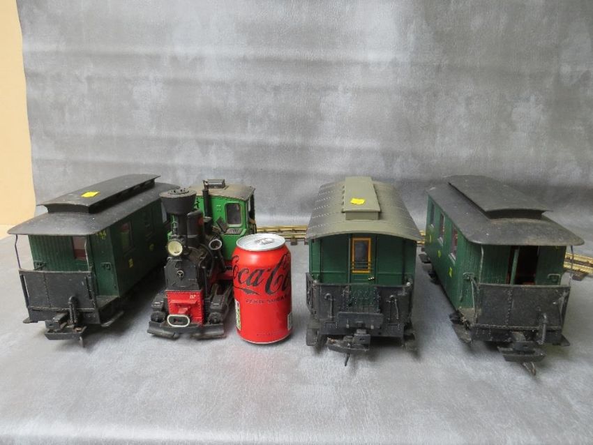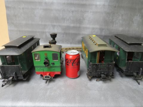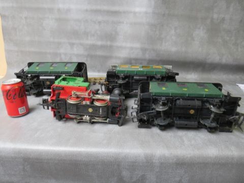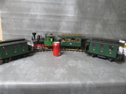 LEHMANN GARDEN SCALE LGB LOCOMOTIVE No.2, together with three green Lehmann LGB carriages