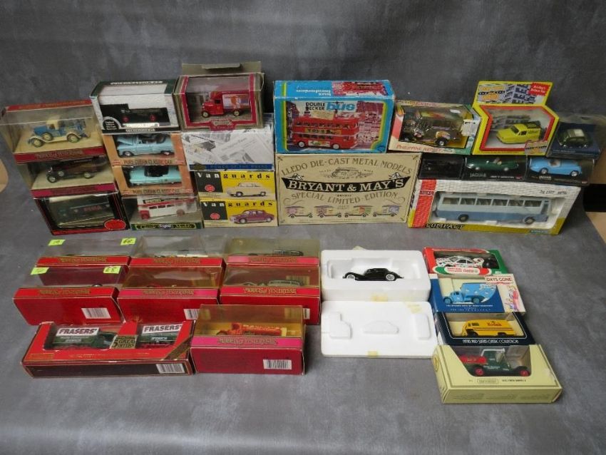 A LARGE COLLECTION OF MIXED BOXED DIE CAST VEHICLES, to include ten Matchbox Models of Yesteryear, two Vanguards Ford 100E and Rover P4, two different New Ray Jaguars, only Fools & Horses Reliant Robin, EFE tanker, two Havana Club cars, Matchbox Power of the Press, Lledo limited edition Bryant and May set, Joal Volvo coach etc., thirty three items in total.NB: One Models of Yesteryear box is A/F and The Frankin Mint car is missing the bonnet