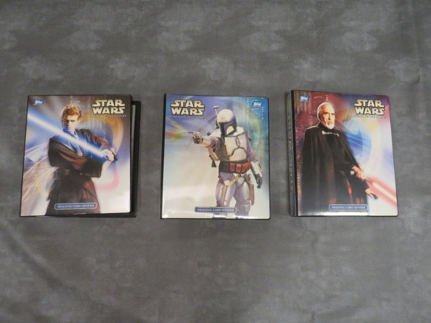 THREE STAR WARS TOPPS TRADING CARD BINDERS AND CONTENTS