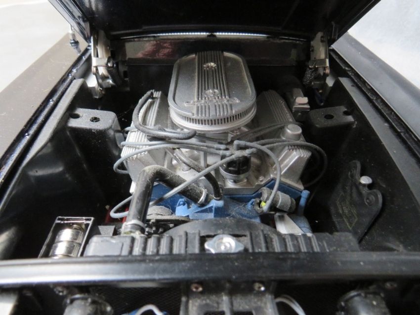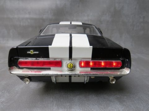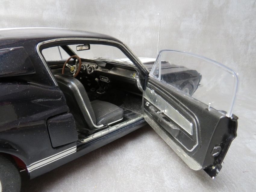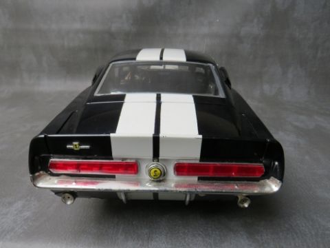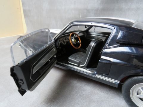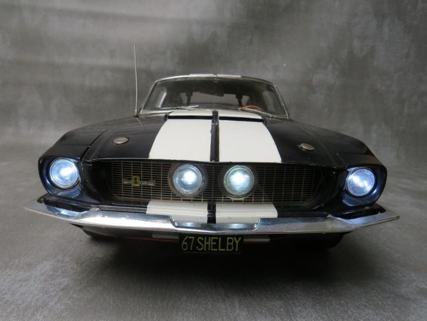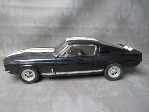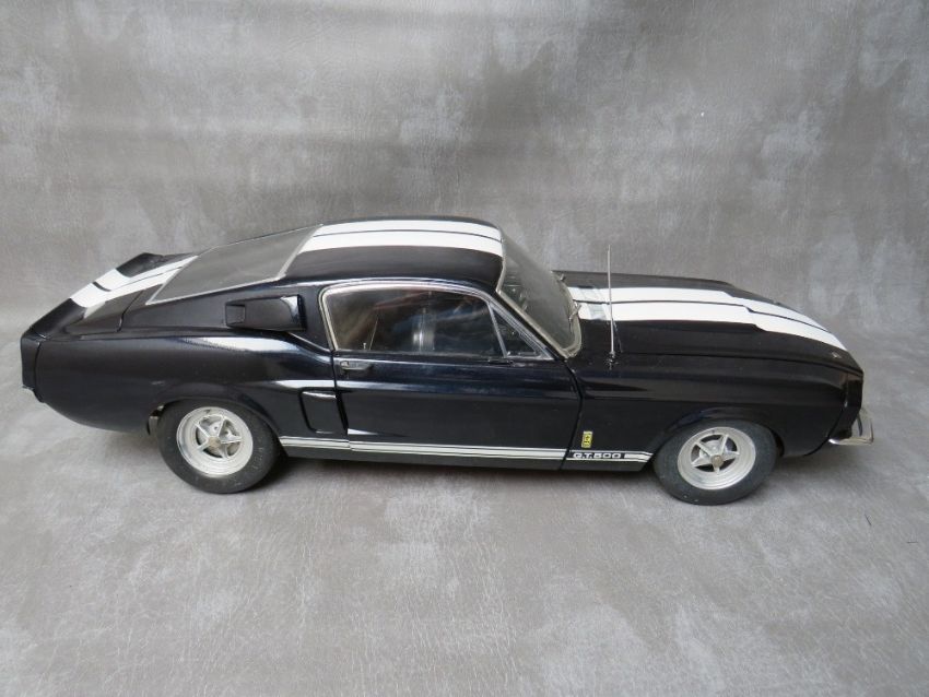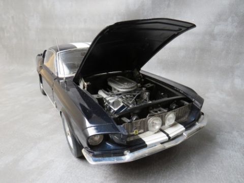 A DE AGOSTINI 1:8 SCALE DIE CAST MODEL OF A FORD MUSTANG 1967 SHELBY GT500, on a mahogany wooden stand