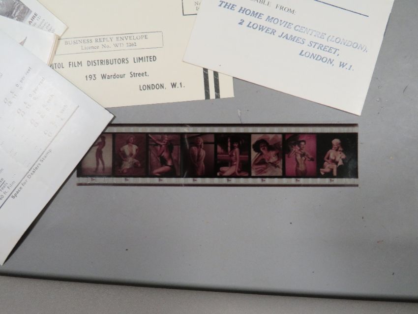 A collection of vintage cini film mail order erotica catalogues to include charm parade visart glamour etc to include original film strip