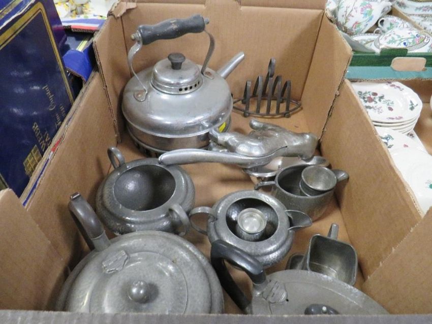 A tray of assorted metal ware to include novelty dog nut cracker etc
