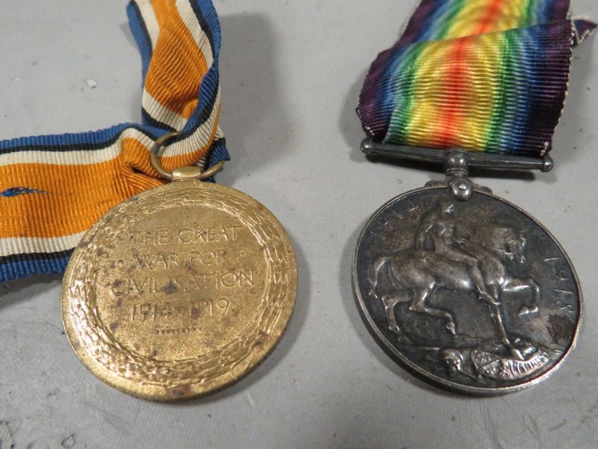 Two World War I medals 96529 PTE TH MARRINER Durham light infinity
