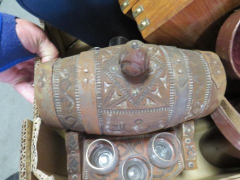 A tray of sundries to include a pair of binoculars