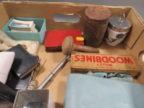 A tray of collectables, watches, scrapbook etc