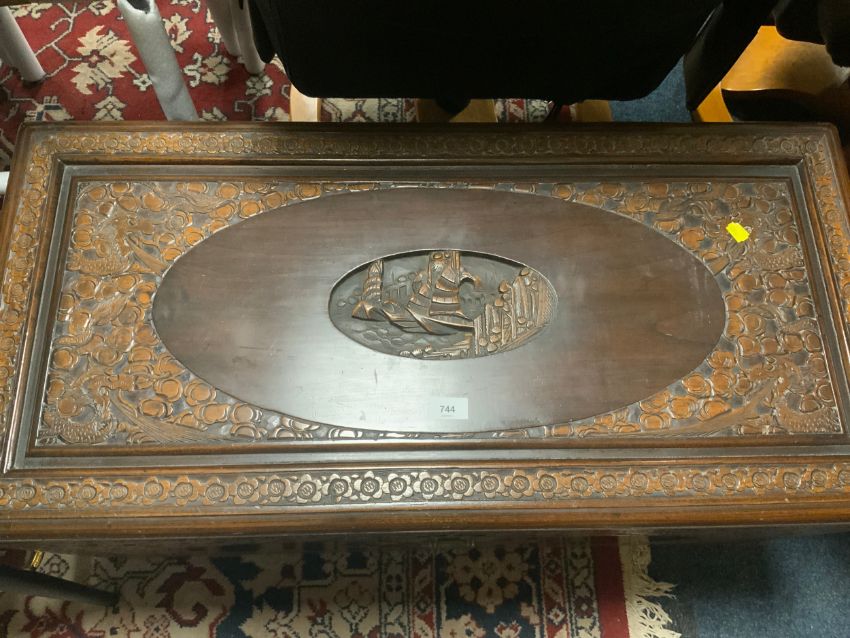 A carved eastern hardwood coffer W 94 cm