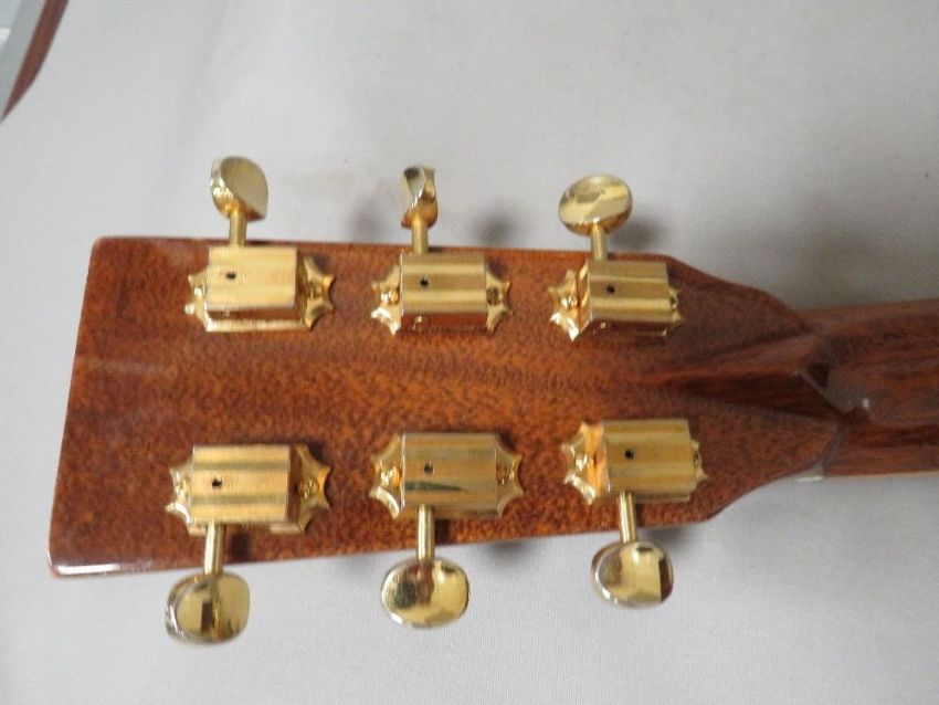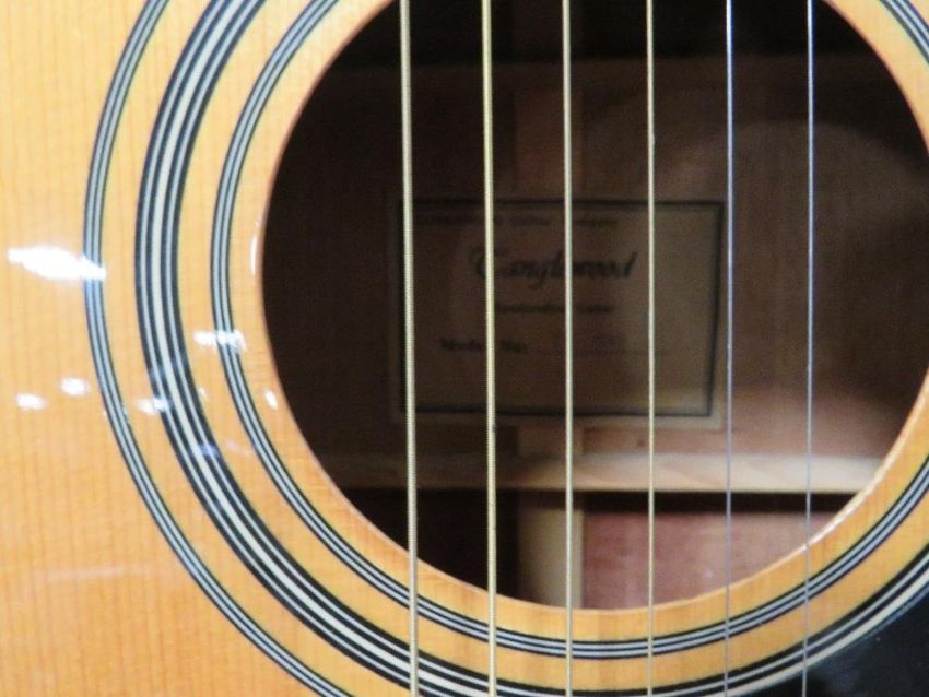 A Tanglewood hand-crafted acoustic guitar with mother of pearl inlaid fret markers model number TW-170AS with padded soft shell carry case