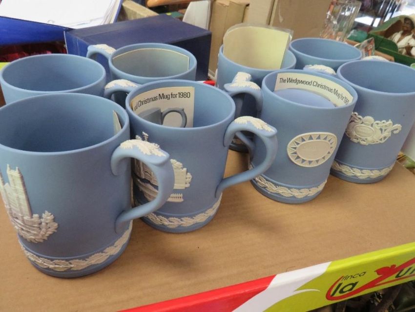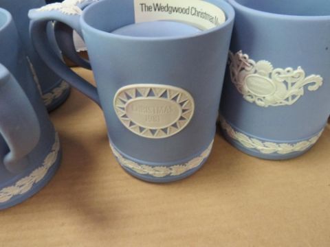 A collection of assorted Wedgwood jasperware Christmas tankards