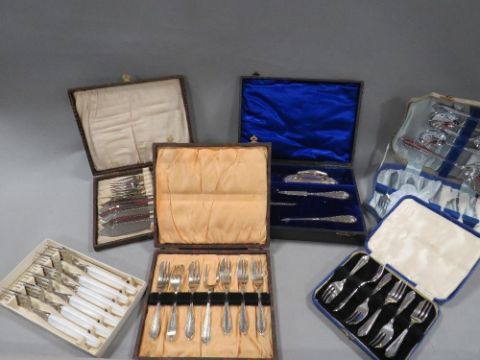 A selection of assorted cased flatware etc
