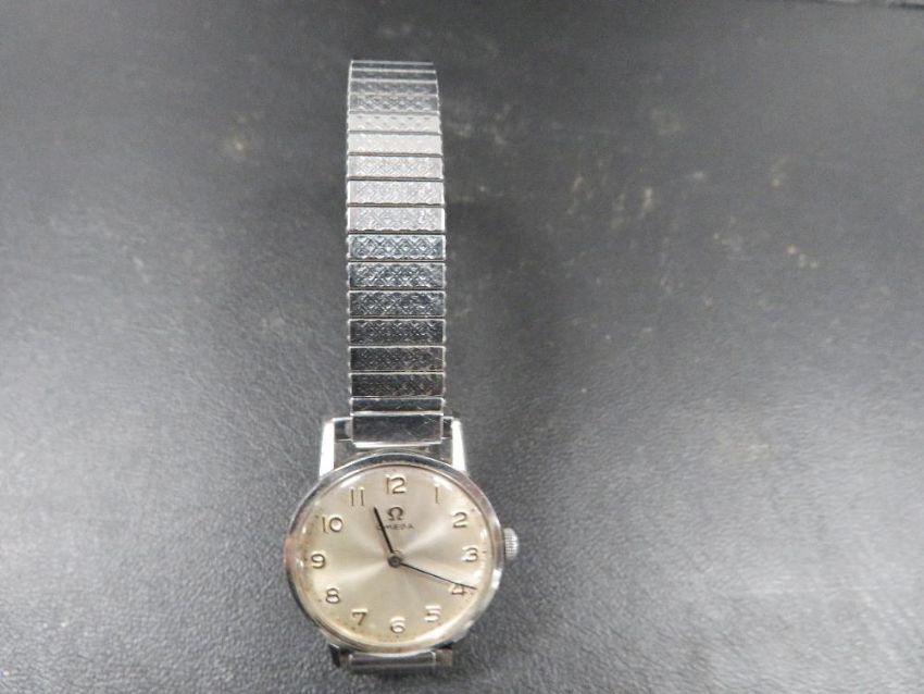 Omega - a vintage wrist watch on expandable steel bracelet in original box Dia 2.5cm