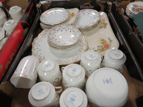 A tray of Royal Doulton "Morning Star" tea ware and a tray with early Royal Doulton "Roslyn" sandwich set and a pendant pattern set