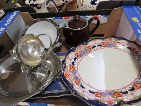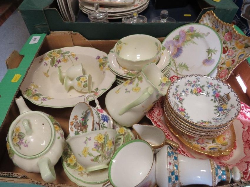 Two trays of ceramics etc. to include a part Royal Doulton April tea set