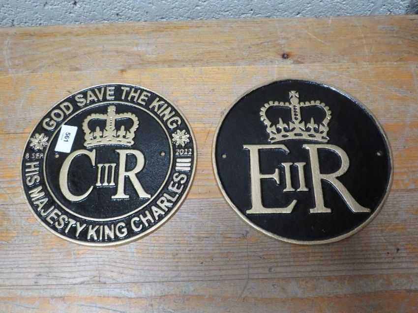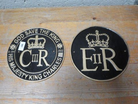 Elizabeth II and Charles III circular plaques**