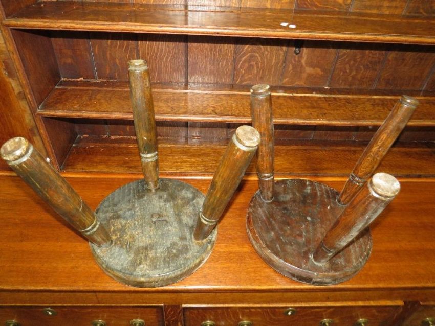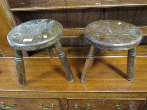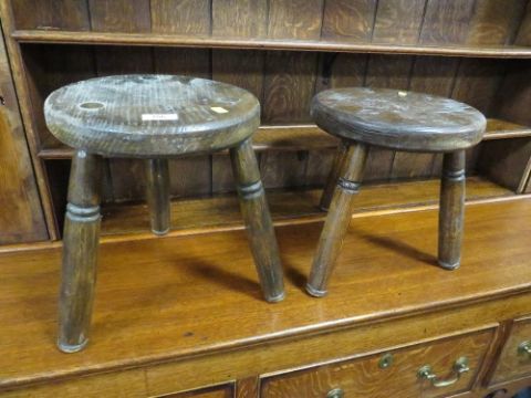 Two oak milking stools