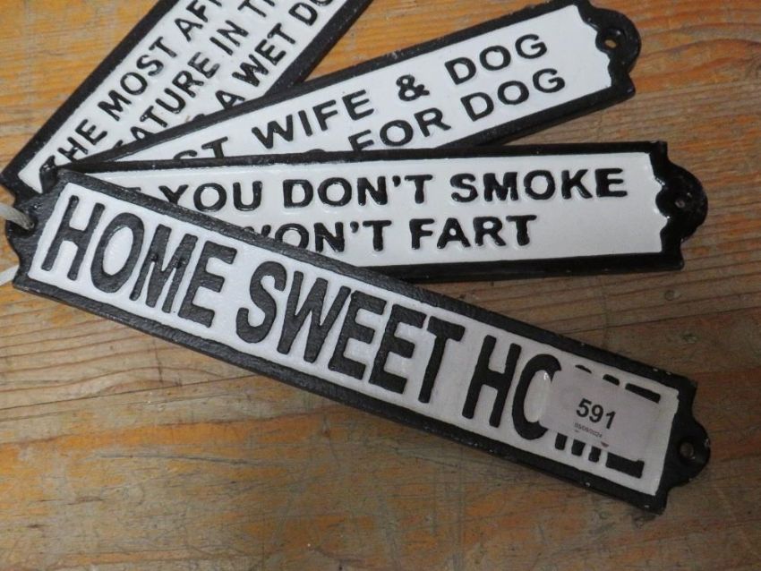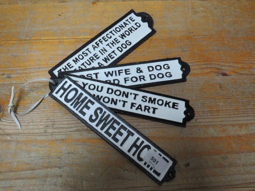 Four rectangular cast signs**
