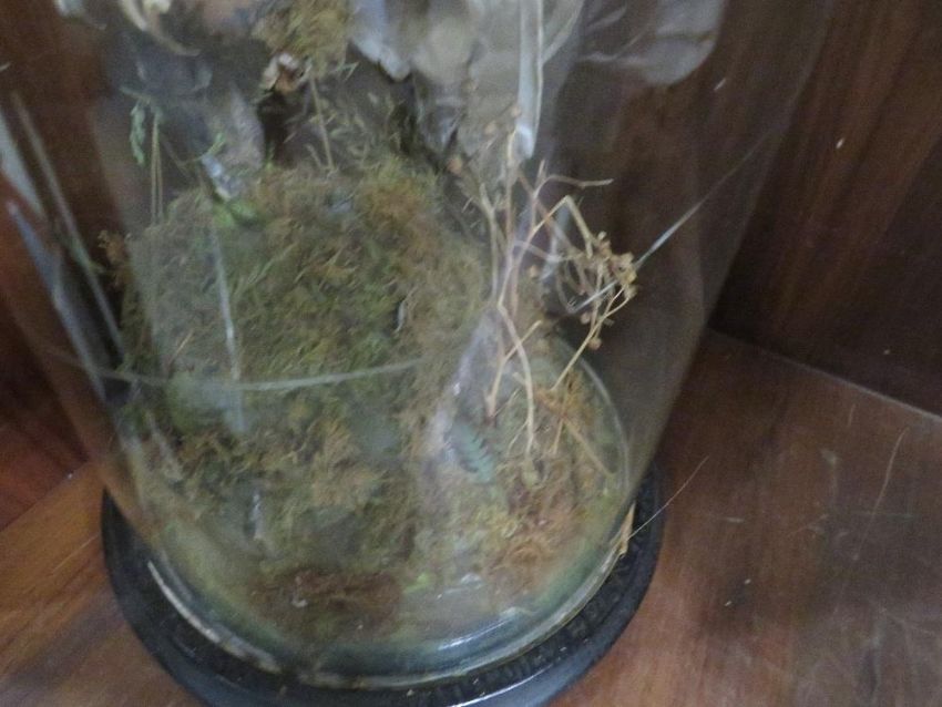 A large taxidermy study of a Tawny owl - glass domed cracked