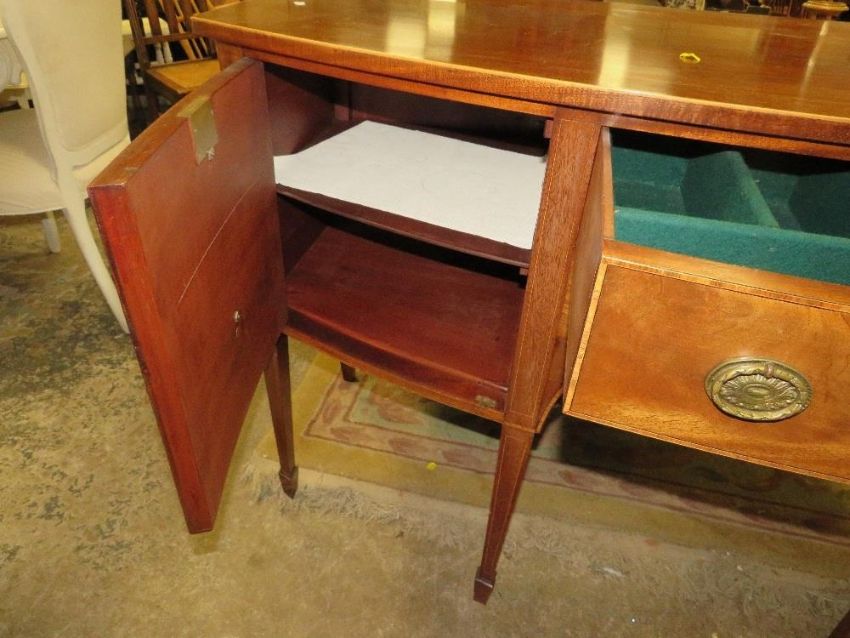 An antique mahogany bow fronted sideboard - W148 cm