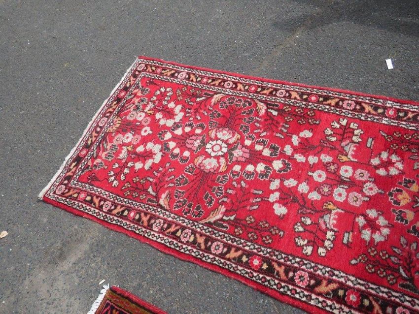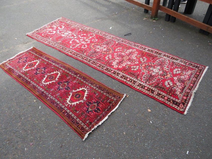 Two handmade Middle Eastern carpet runners - longest 319 cm x 94 cm