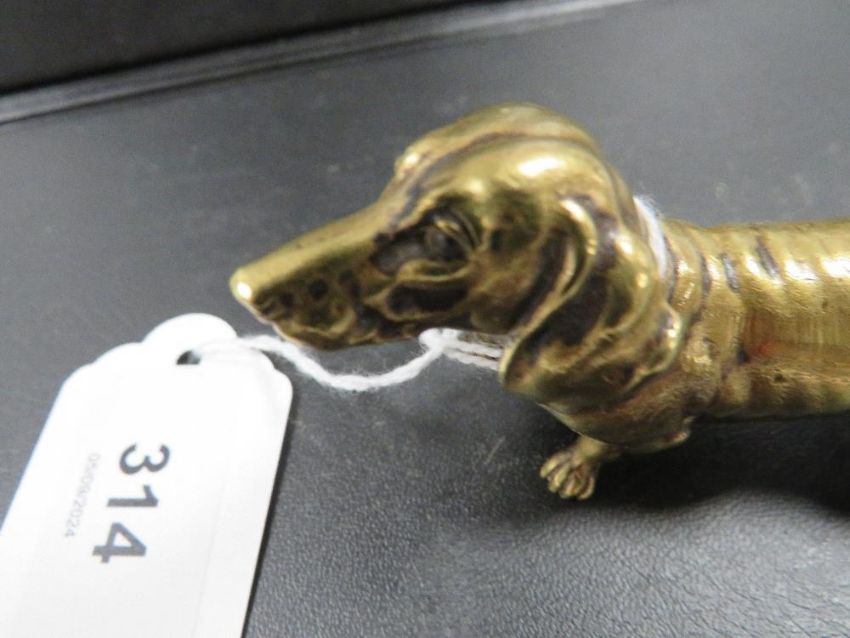 A small cast brass figure of a Dachshund dog