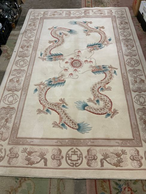 A large modern Chinese woollen dragon rug by GH Frith 274 x 183 cm