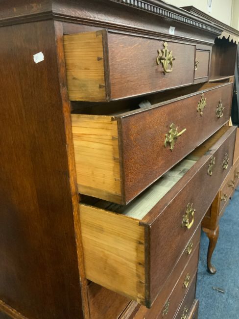 An antique oak tall boy with two short over three long drawers and three further long drawers to the base H 174 cm W 105 cm
