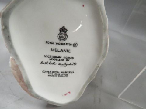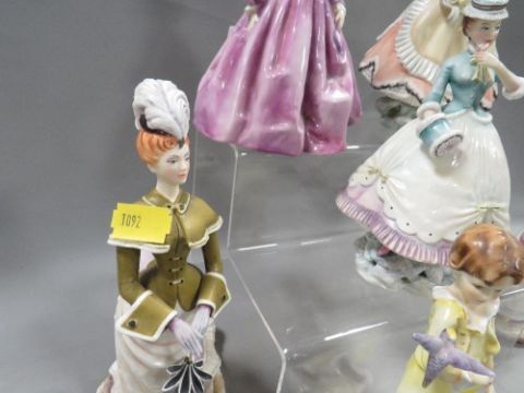 A collection of six Royal Worcester figurines to include "Grandmother's Dress" in purple colourway and "The Parakeet"