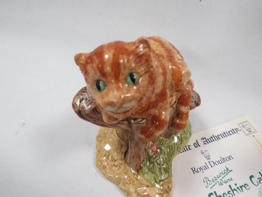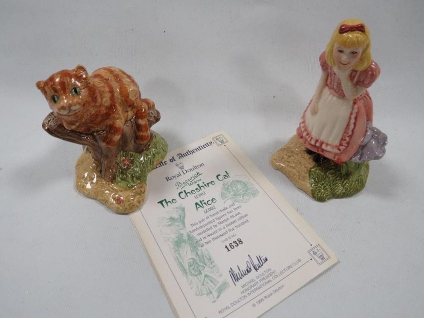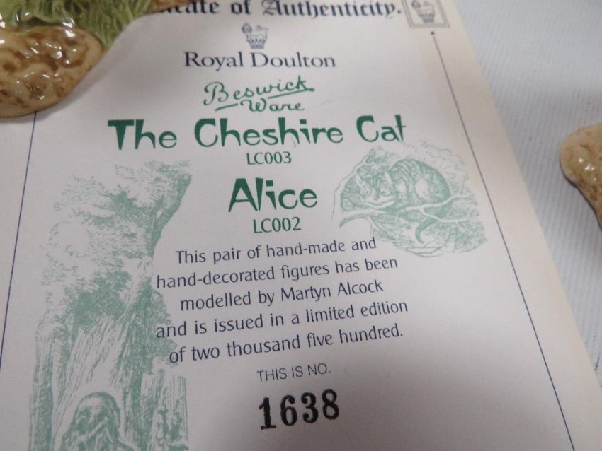 Two Beswick limited edition Alice in Wonderland figures Alice AC2, Cheshire cat LC3 both numbered 1638 with certificate