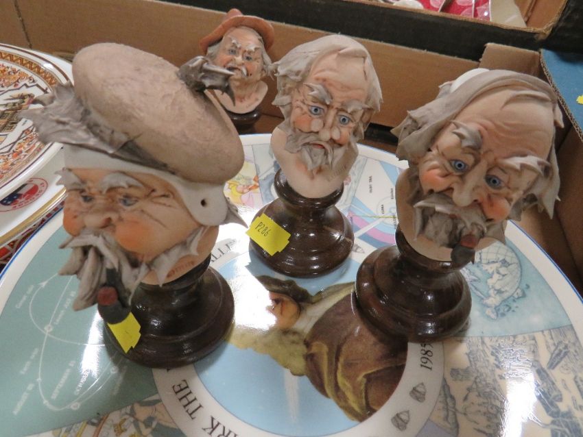 A tray of sundries to include Capodimonte figures, Wedgwood and Coalport collectors plates