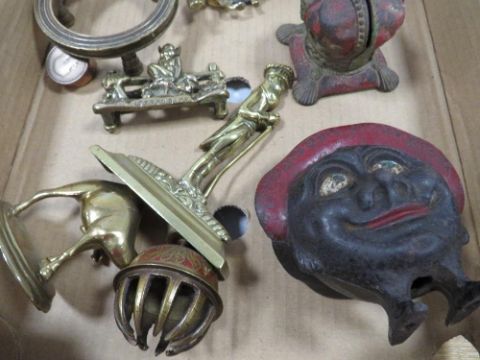 A tray of collectable metalware to include a vintage Save and Smile money box