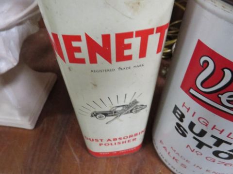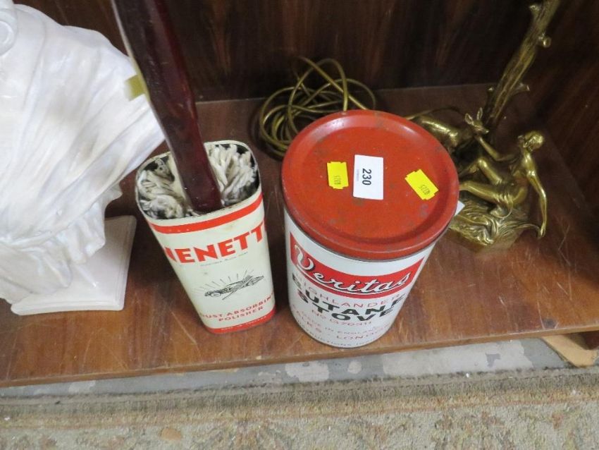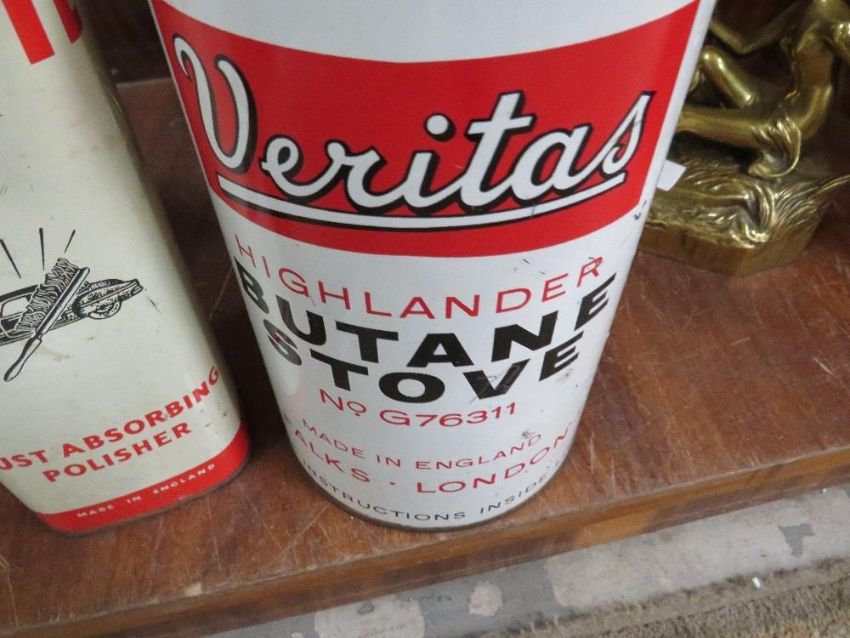 A vintage Nenette dust absorbing polisher in original tin together with a Veritas highlander butane stove (2)