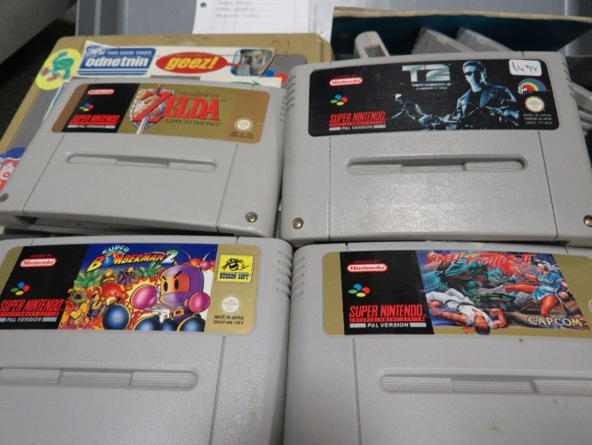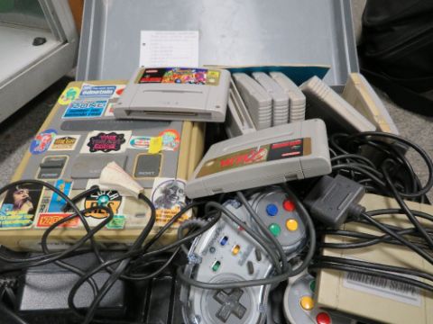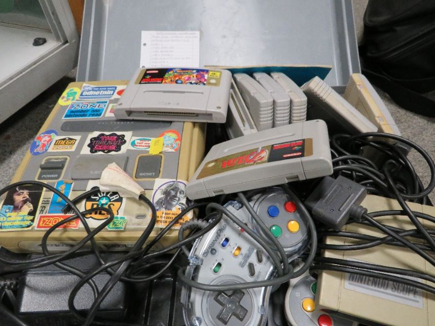 A cased Nintendo super NES console game and controllers (unchecked)