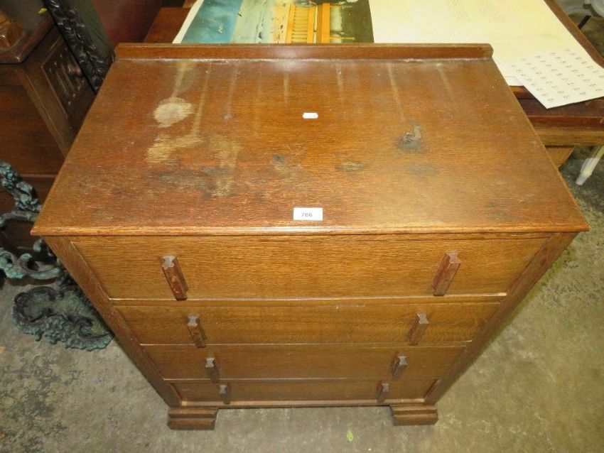An Art Deco oak cased four drawer chest - W 74 cm, A/F