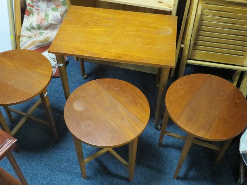 A retro teak nest of three tables