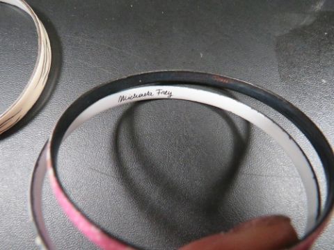 Two Michaela Fray enamel bangles together with a similar unmarked example (3)