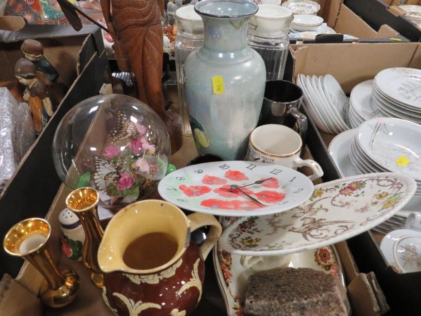 Four trays of assorted ceramics and sundries to include Carlton ware Australia tea/dinner ware