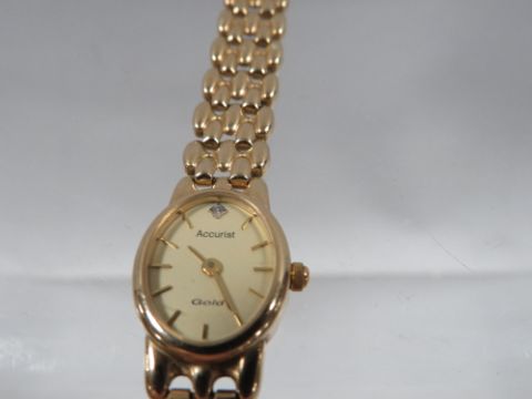 A hallmarked 9 carat gold Accurist wrist watch with stone set to dial at 12 o' clock approx. weight 14.4g