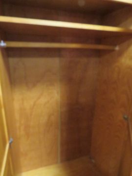 A pair of modern honey pine double wardrobes