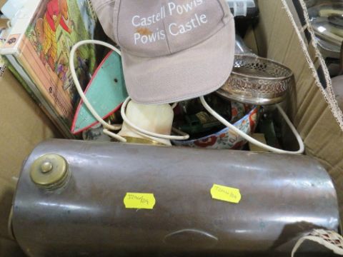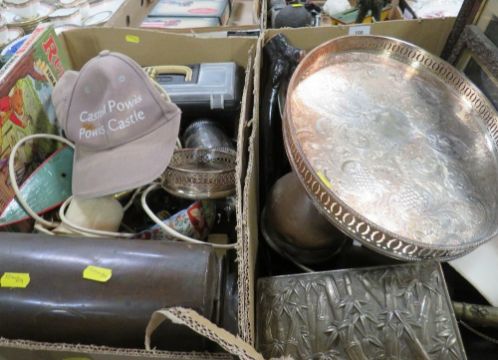 Two trays of sundries, to include a silver plated gallery tray etc