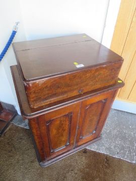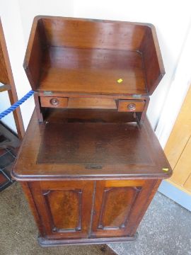 An unusual 19th century mahogany desk with lift up lid opening to reveal a leather writing surface W 66 cm