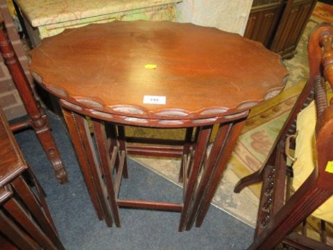 Two vintage mahogany nests of tables together with an Edwardian mahogany piano stool