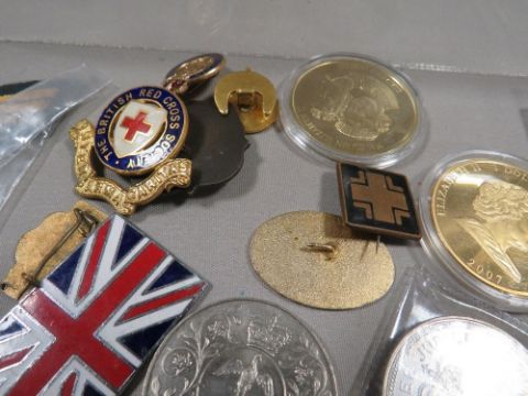 Enamel badges, medals and coins