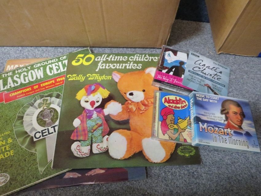 A tray of LP records and CDs mostly classical